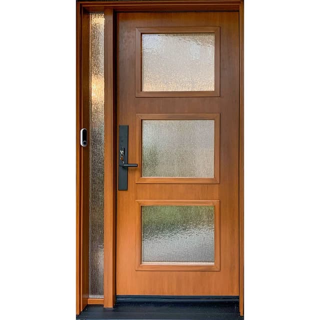 Teak Modern Fiberglass Door with a Direct Glazed Sidelite